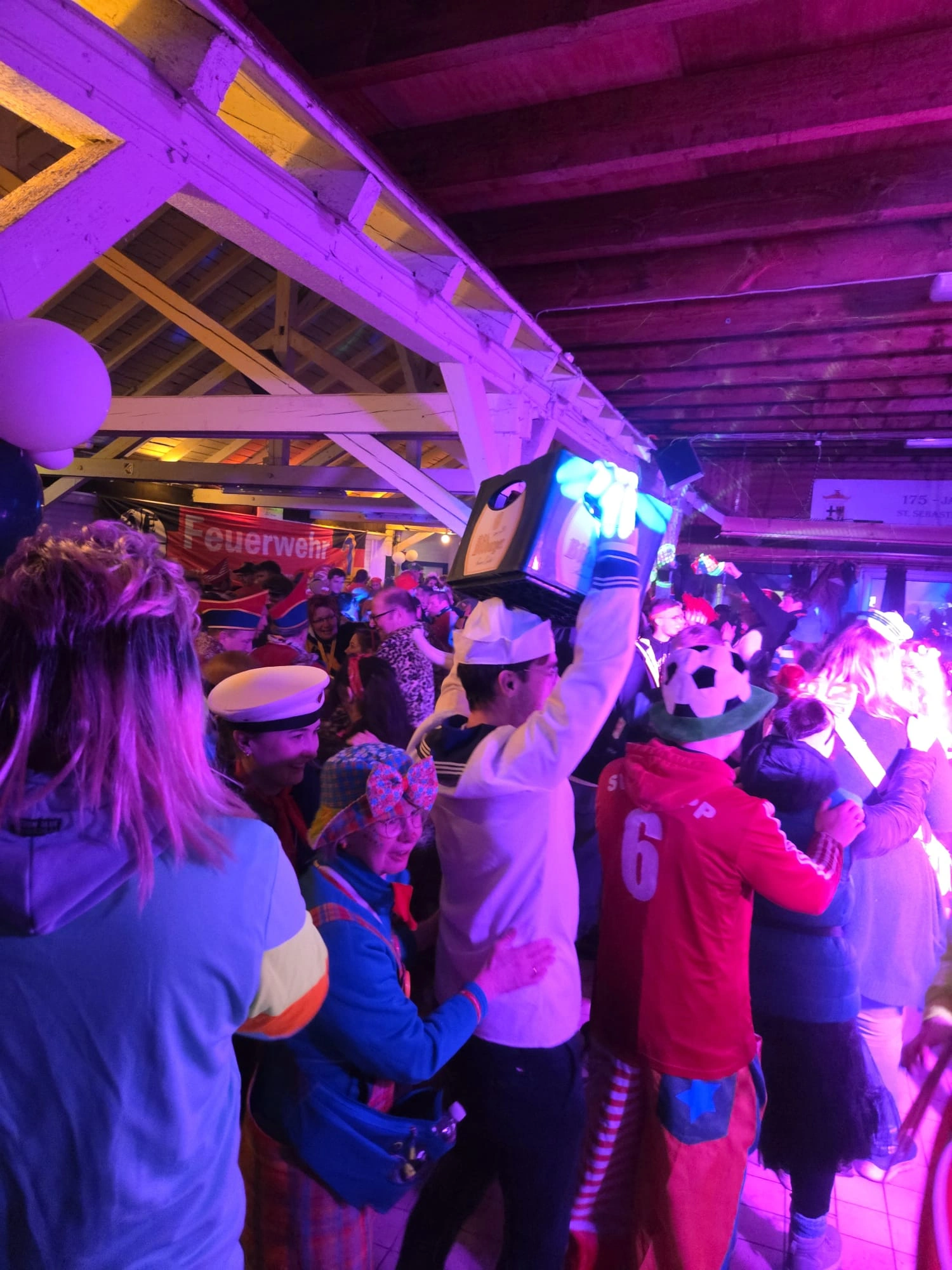 Für den musikalischen Rahmen sorgte DJ Jörg, der mit einer Mischung aus Karnevalsklassikern und modernen Partykrachern die Tanzfläche durchgehend in Bewegung hielt. Mehrfach bildeten sich lange Polonäsen, die sich quer durch den Saal schlängelten und die ausgelassene Atmosphäre unterstrichen.