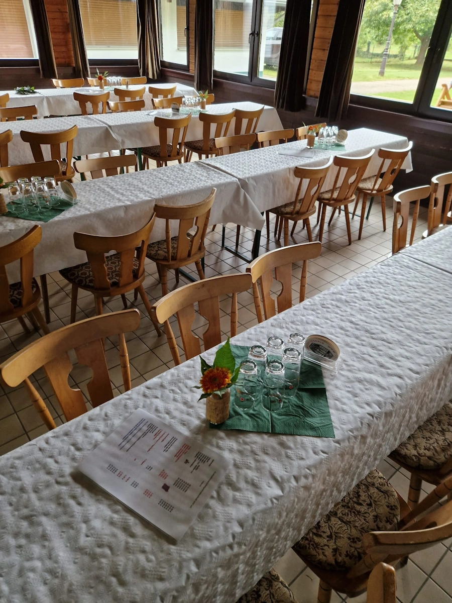 - Festhalle für bis zu 130 Personen – perfekt für Hochzeiten, Geburtstage, Firmenfeiern und mehr.